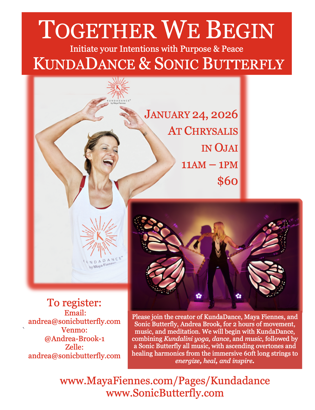 Please enjoy this selection of videos in the slider including Butterfly Nature solo Sonic Butterfly performance, the Multi-Media trio with projections, Blue Cocoon trio, and the full band Kaleidoscope. For more videos, please visit the Performance page and Ojai Cocoon Performances / Guest Artist Series page on this website, as well as Andrea’s YouTube Channel.