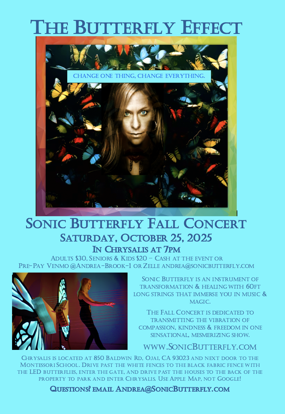 Please enjoy this selection of videos in the slider including Butterfly Nature solo Sonic Butterfly performance, the Multi-Media trio with projections, Blue Cocoon trio, and the full band Kaleidoscope. For more videos, please visit the Performance page and Ojai Cocoon Performances / Guest Artist Series page on this website, as well as Andrea’s YouTube Channel.